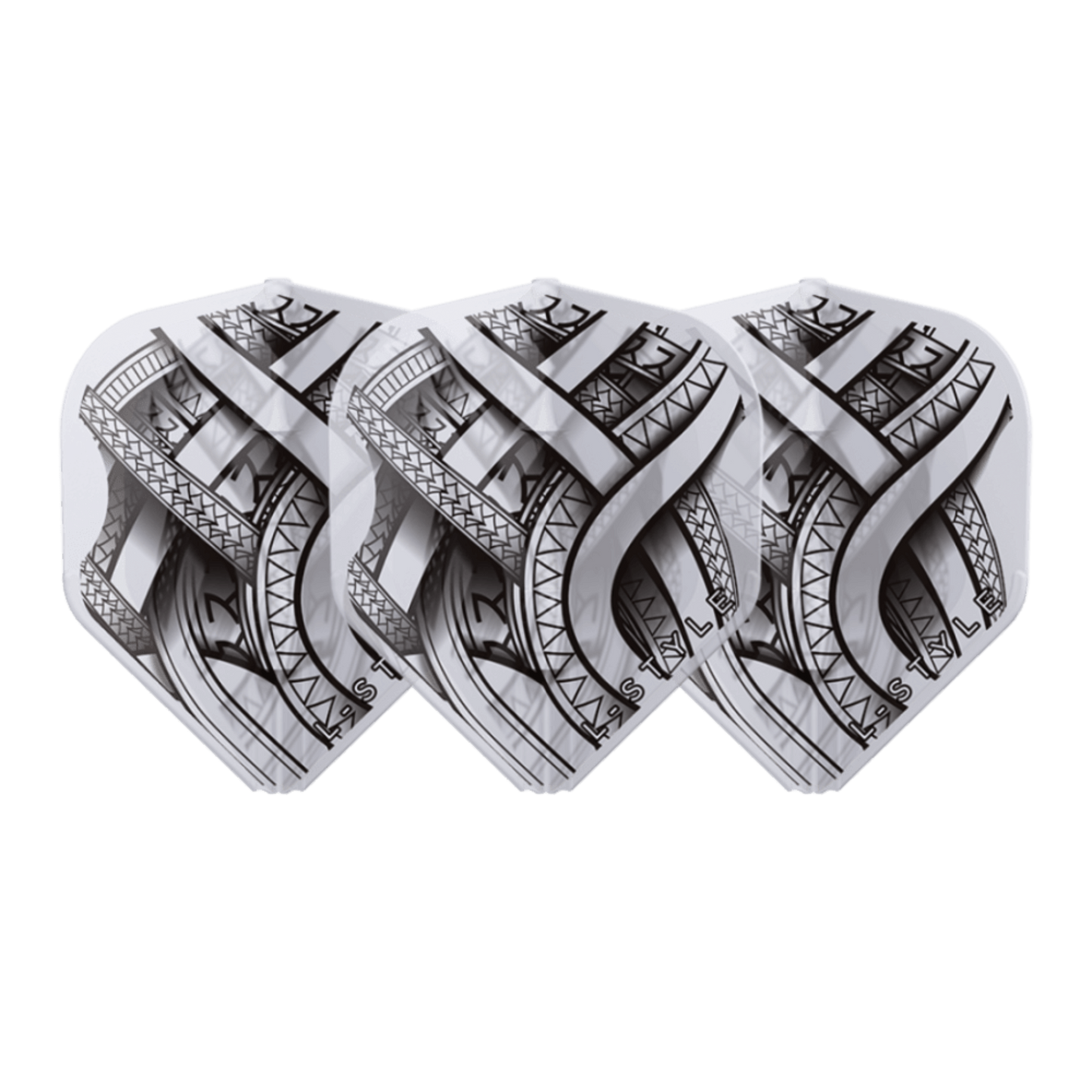 L-Style EZ L1 Mike de Decker Type A Black Clear White dart flights are sold as a set (3 Dart Flights in total)