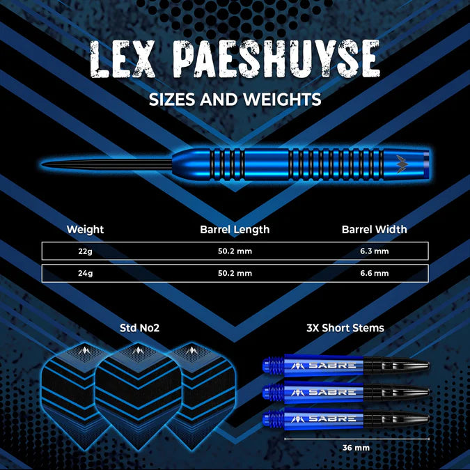 Mission Lex Paeshuyse Darts - Steel Tip - 90% Tungsten - Blue & Black.