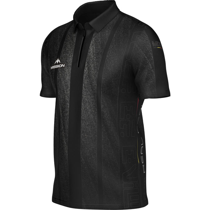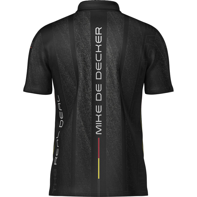Mission Player Dart Shirt - Mike De Decker - The Real Deal - Small. Show your support for the 2024 World Grand Prix champion with the Mission Mike De Decker Player Shirt. Look the part on the oche with De Decker’s signature shirt that includes his name, ‘The Real Deal’ nickname and the colours of the Belgian flag on the shirt’s design. This high performance darts shirt is lightweight, comfortable and highly breathable and has been designed to give outstanding technical performance on the oche. The technical weave and synthetic thread of this shirt uses the scientific principle of capillary action to draw moisture away from the body, reducing temperature and providing players with maximum comfort. This modern darts shirt can be washed and worn repeatedly with no ironing and with no significant colour loss. Available in sizes from small to 5XL.